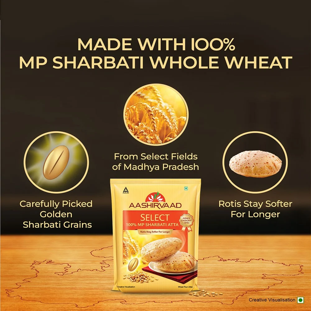 Aashirvaad Select is made with 100% Sharbati wheat, harvested from selected regions of Madhya Pradesh.