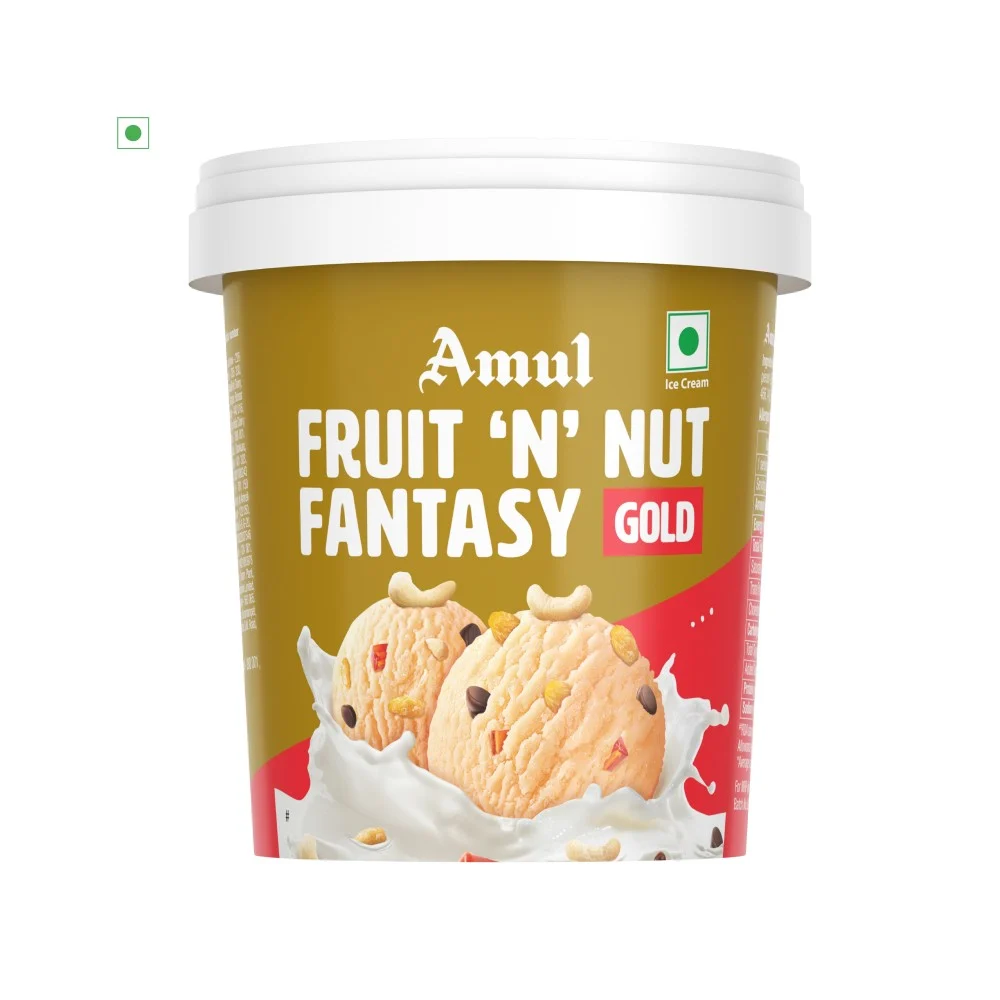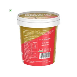 Milk solids, sugar, orange jelly (4%), chocolate chips (3%), cashew pieces (2.5%), raisins (2.5%), permitted emulsifier (471), stabilizers (407, 412, 466, 415), artificial flavouring substances (késar elaichi), colour (102, 110). Allergen Information: Contains milk, nuts.