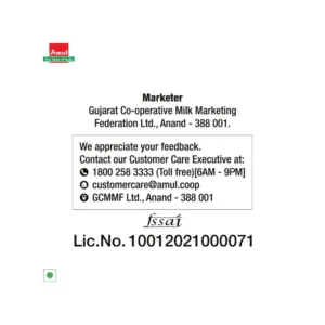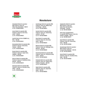 Kaira District Co-operative Milk Producers’ Union Limited, Anand 388 001. At Food Complex Mogar, Mogar. Lic. No. – 10014021001010.