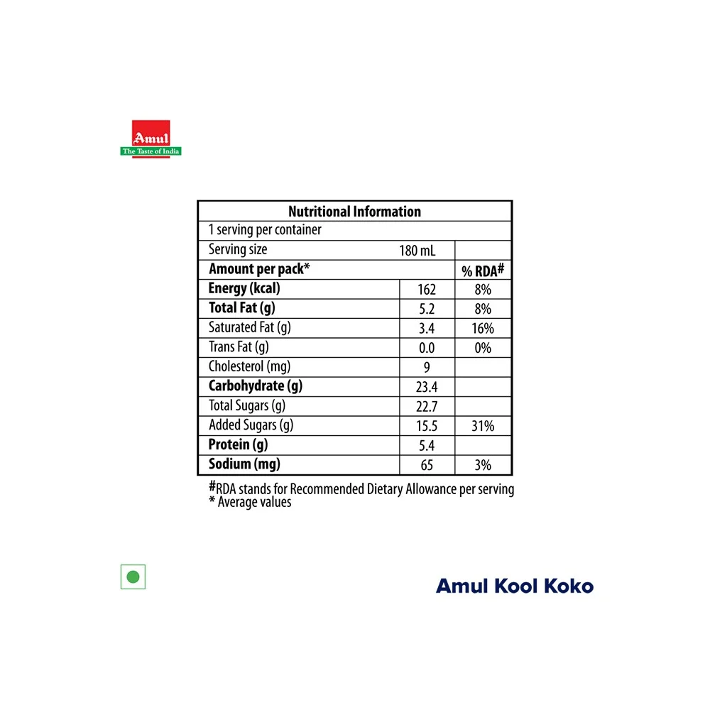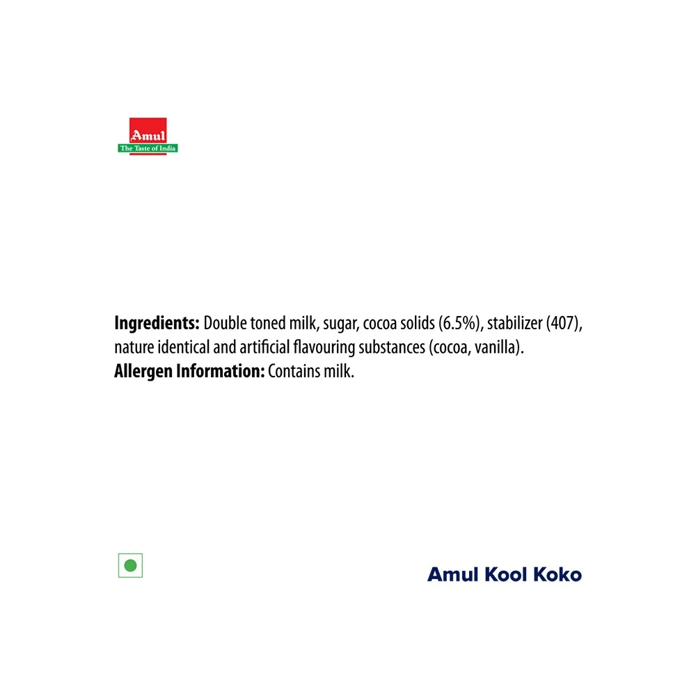 Amul Kool Koko Chocolate Flavoured Milk (Can) is a fun and nourishing drink with chocolate. This delicious drink revitalises immediately with the nutritional benefits of milk and refreshes with the redolent taste of chocolate.