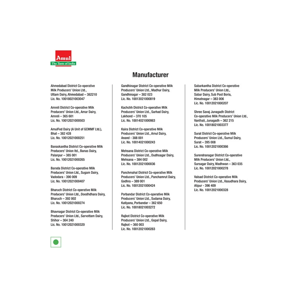 Kaira District Co-operative Milk Producers’ Union Limited, Anand 388 001. At Food Complex Mogar, Mogar. Lic. No. – 10014021001010.