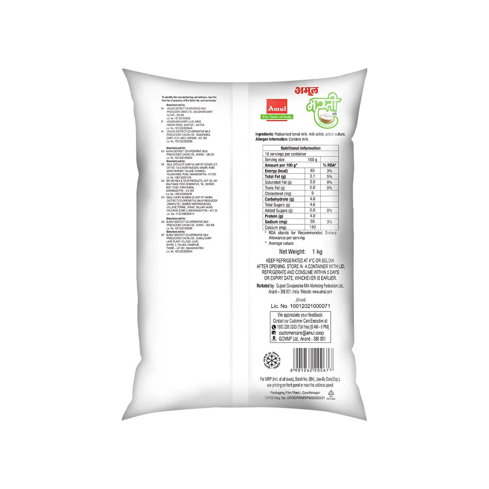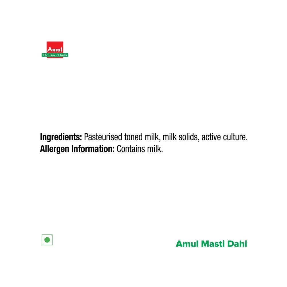 Pasteurised Toned Milk, Milk Solids & active Culture