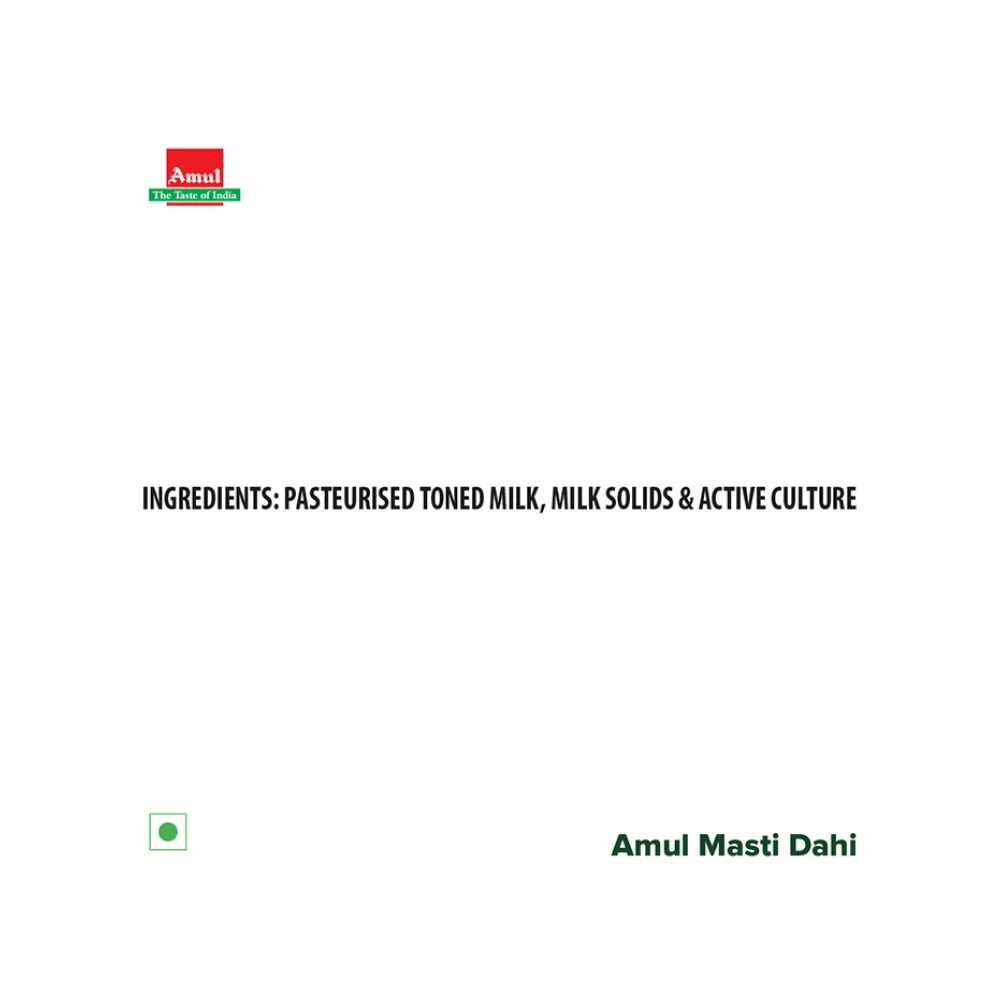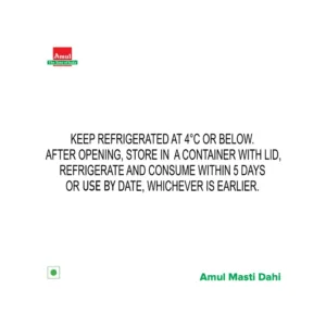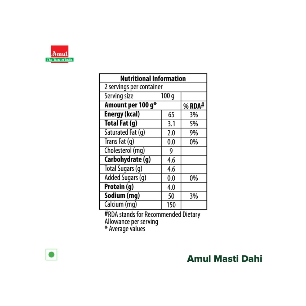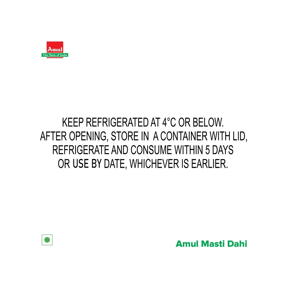 Thick and delicious, Amul Masti Dahi (Cup) makes for a delightful meal time accompaniment. Packed with the goodness of essential nutrients, it is used in preparation of Lassi, Dahi Vada and various other delectable dishes.
