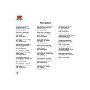 Kaira District Co-operative Milk Producers’ Union Limited, Anand 388 001. At Food Complex Mogar, Mogar. Lic. No. – 10014021001010.
