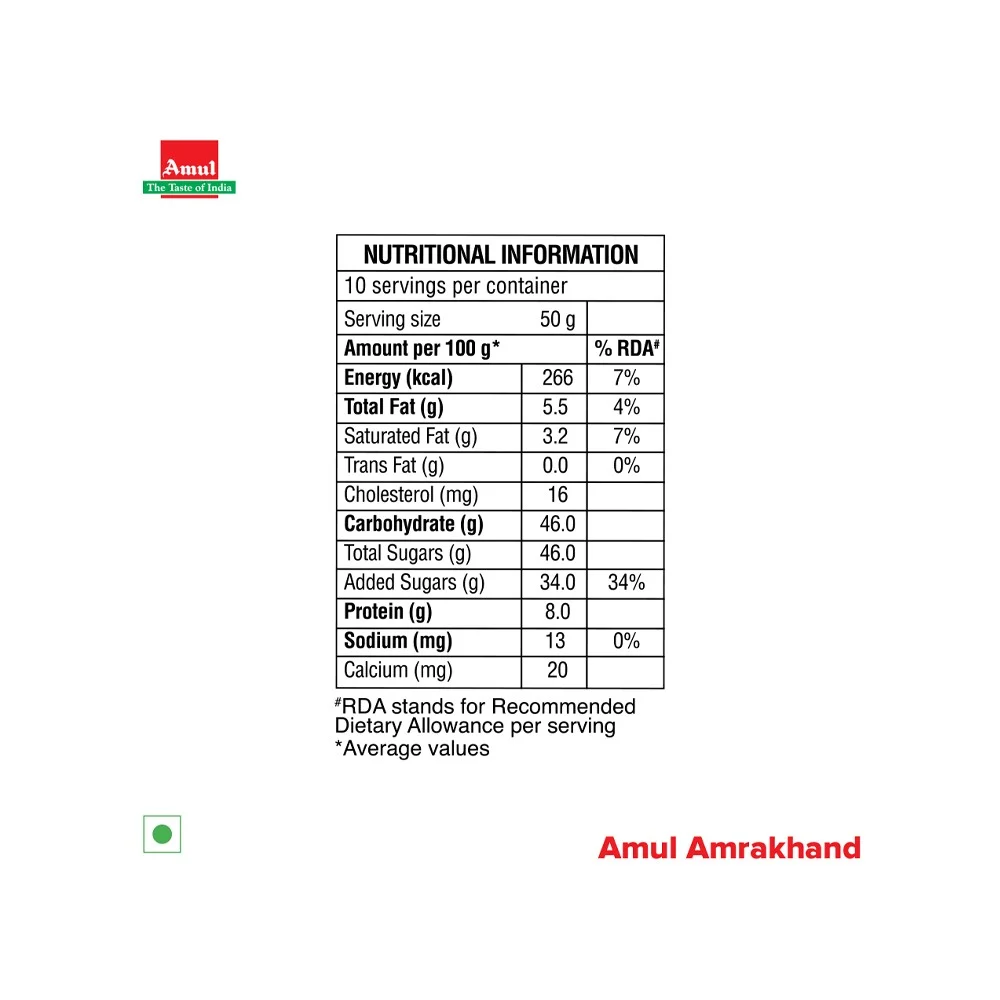 Amul Mango Srikhand is a semi-soft slightly sour sweetish milk dessert which is prepared with the help of lactic fermented curd. The flavour of the mango adds a refreshing touch and you can enjoy the dessert in its chilled version on a hot summer day.