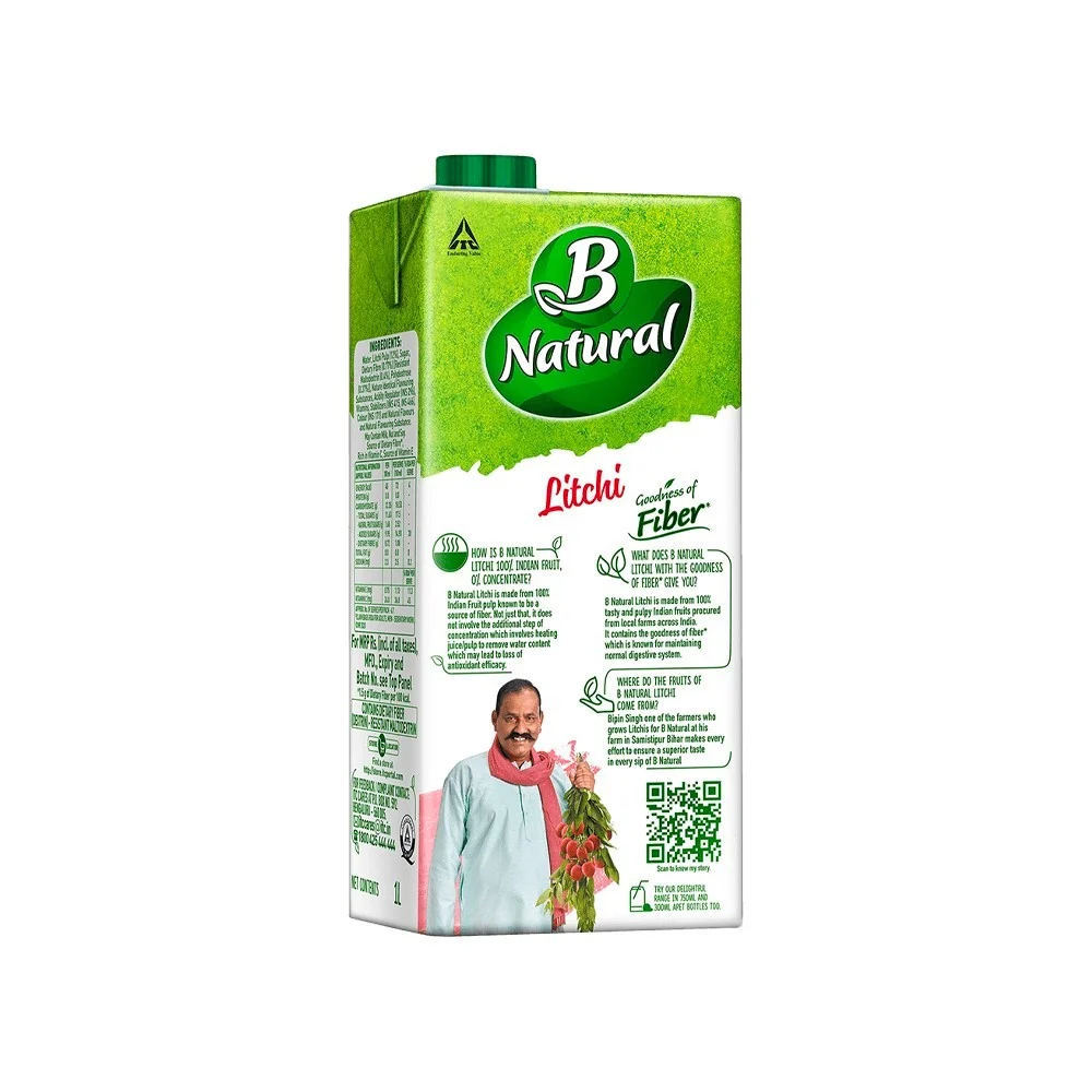 B Natural Litchi Juice: Experience the joy of relishing ripe, juicy and sweet glory in a delicious juice