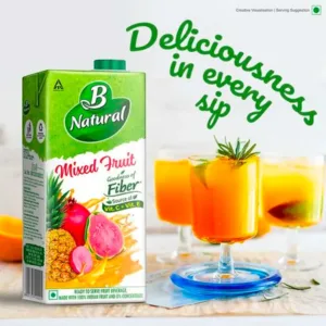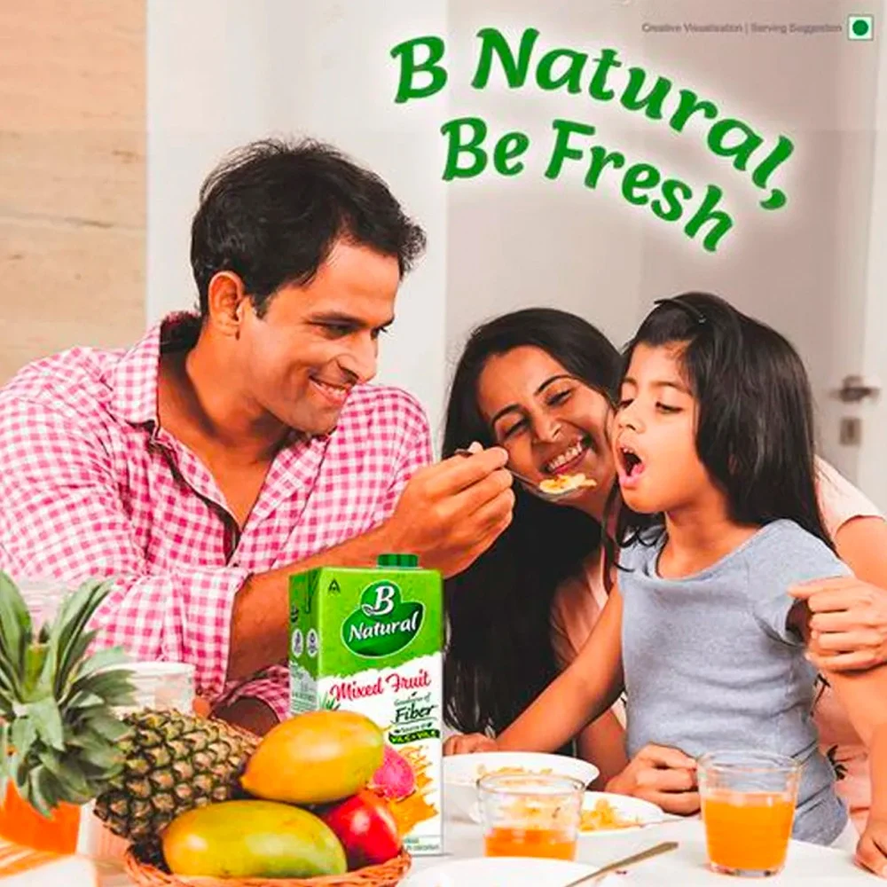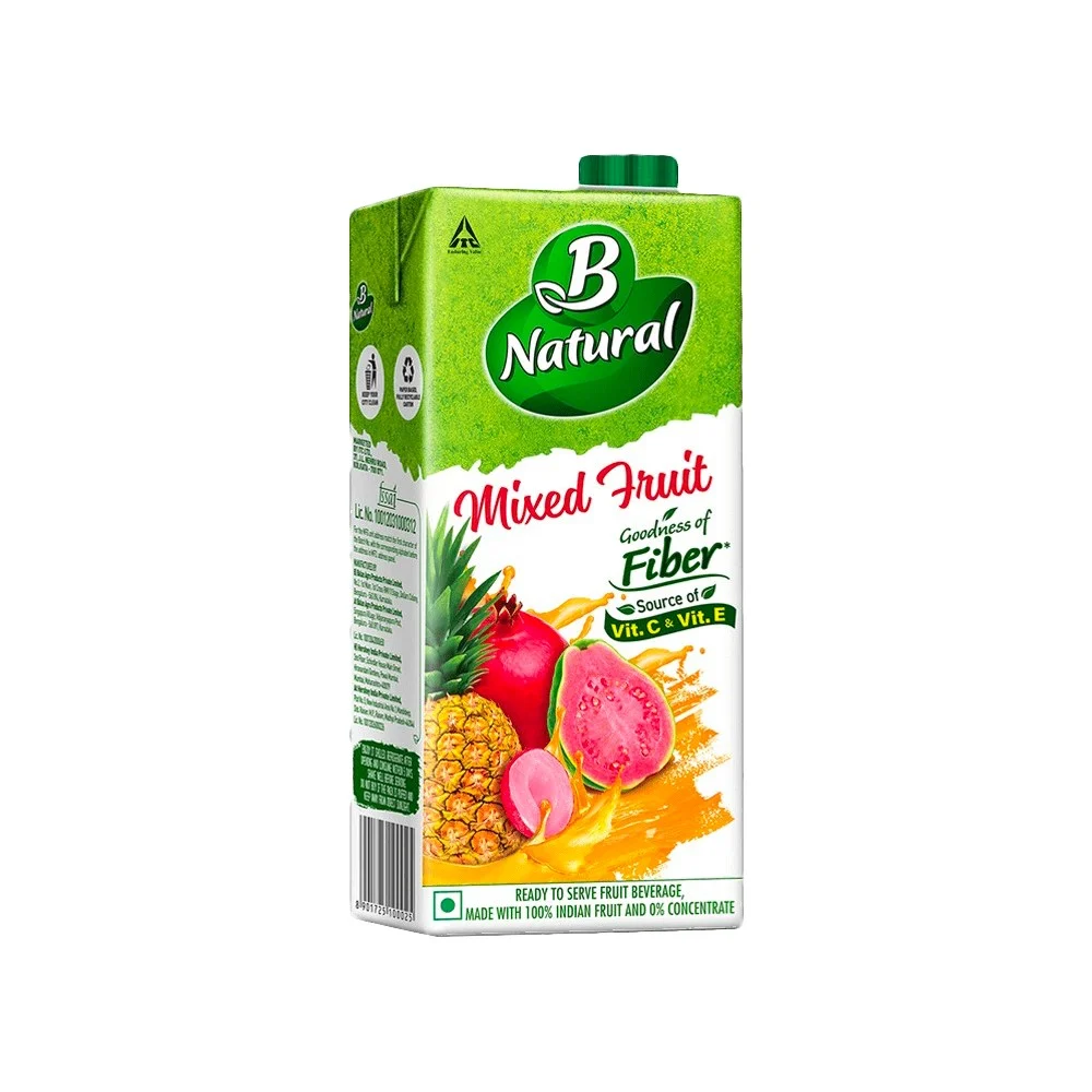 B Natural Mixed Fruit Juice: Enjoy the scrumptious taste of mango, banana, pineapple, guava, jamun and bael, that has been squeezed into each pack of this fruit juice.