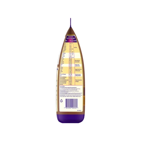 Energy 385 Kcal, Protein 7 G, Carbohydrate 86.8 G, Total Sugars 48 G, Added Sugars 29.6 G, Dietary Fiber 3.1 G, Total Fat 0.7 G, Saturated Fat 0.2 G, Trans Fat 0G, Cholesterol 2 Mg, Sodium 287 Mg, Vitamin D2 18.8 µg, Calcium 500 Mg, Manganese 1.8 Mg, Magnesium 132 Mg, Lodine 113 µg, Iron 23 Mg, Vitamin A 790 µg, Vitamin C 95 Mg, Copper 1.1 Mg, Selenium 19 µg, Zinc 7.4 Mg, Vitamin B1 (Thiamin) 0.42 Mg, Biotin 15 µg, Vitamin B2 (Riboflavin) 0.6 Mg, Vitamin B3 (Niacin) 5.5 Mg, Vitamin B5 (Pantothenic Acid) 2.5 Mg, Vitamin B6 (Pyridoxine) 0.8 Mg, Vitamin B9 (Folic Acid) 75 µg, Vitamin B12 1.4 µg % Rda^ Per Serve-Energy 4%, Added Sugars 11.8%, Total Fat 0.2%, Saturated Fat 0.2%, Trans Fat 0%, Sodium 2.9%.