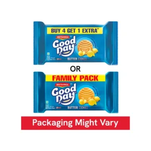 Britannia Good Day Butter Cookies are buttery-flavored cookies that satisfy your cravings between meals. Crunchy and crispy, the butter smoothly melts in your mouth, giving a delicious taste.