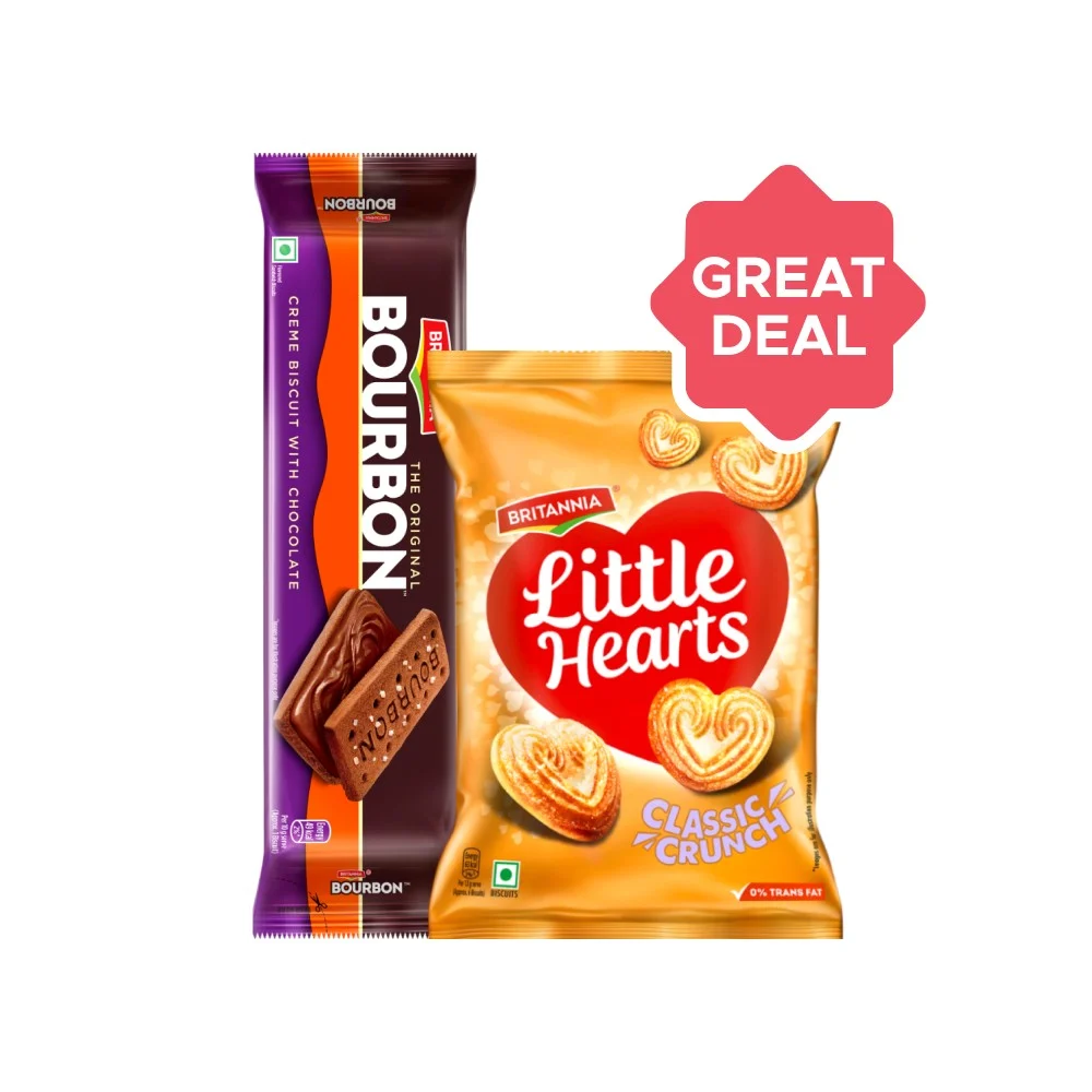 Britannia Little Hearts Classic Crunch Biscuit :- 10015043001129 , Britannia The Original Bourbon Creme Biscuit With Chocolate :- 10015043001129