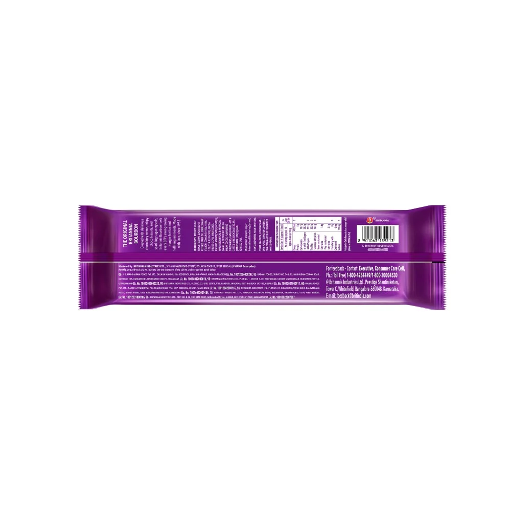Britannia The Original Bourbon Creme Biscuit With Chocolate :- Britannia Bourbon Chocolate Cream are a delightful combination of smooth chocolate cream with crunchy chocolate biscuits topped with sparkling sugar crystals. Every bite of these delicious, chocolaty and indulgent cookies entices you for more and more. The satisfying and rich taste of chocolate enclosed in crispy, crunchy biscuits gives you a mouth-watering experience. Britannia biscuits, cookies, cakes and rusk are a perfect companion for your tea.