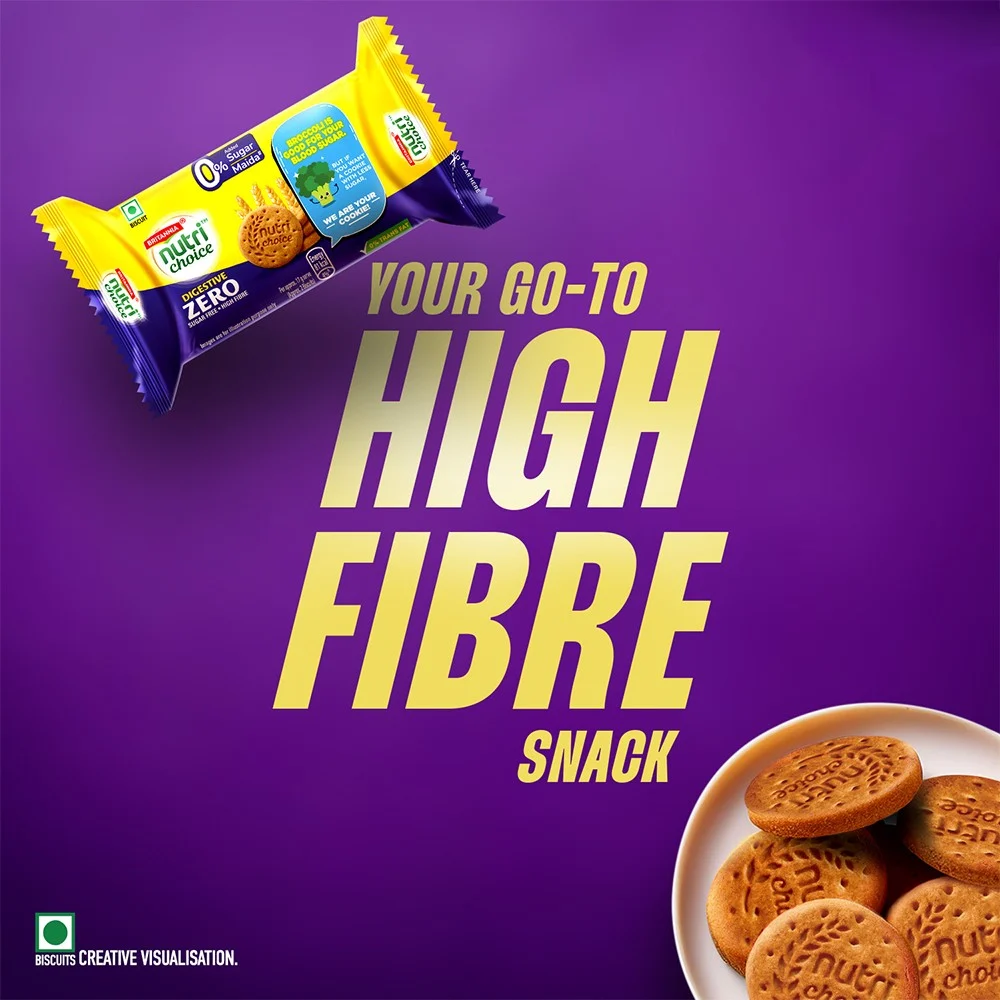 Britannia NutriChoice Digestive Biscuits are fibre-rich biscuits packed with the richness of wheat flour (atta) and bran. With every bite, you experience the coarseness of this fibre-rich biscuit. These Digestive cookies are baked to precision, making them a great snack option. Available in a large pack with 50g free. Go ahead and make a good choice.
