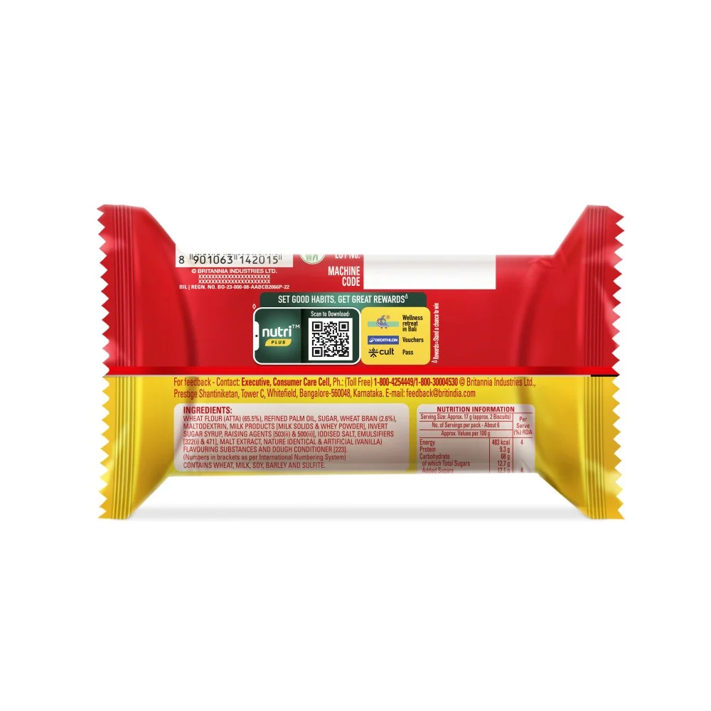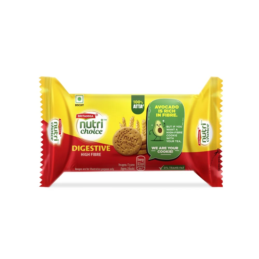 Britannia NutriChoice Digestive Biscuits are fibre-rich biscuits packed with the richness of wheat flour (atta) and bran. With every bite, you experience the coarseness of this fibre-rich biscuit. These Digestive cookies are baked to precision, making them a great snack option.