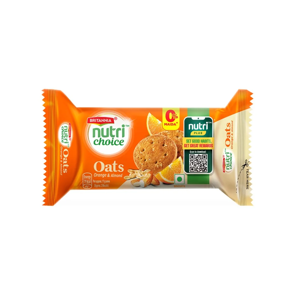 Britannia NutriChoice Oats Orange Cookies offer a tastier option for your daily snacks. Made with the goodness of oats and infused with a tangy orange flavor, these biscuits soothe your taste buds any time of day.