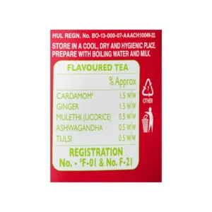 Red Label Natural Care Tea contains the goodness of *5 Natural Ingredients – Cardamom, Ginger, Tulsi, Mulethi and Ashwagandha that enhance immunity, improving your body’s natural defence and helping you fall ill less often. These 5 ingredients give a unique flavour resulting in a tasty, rich cup of tea.