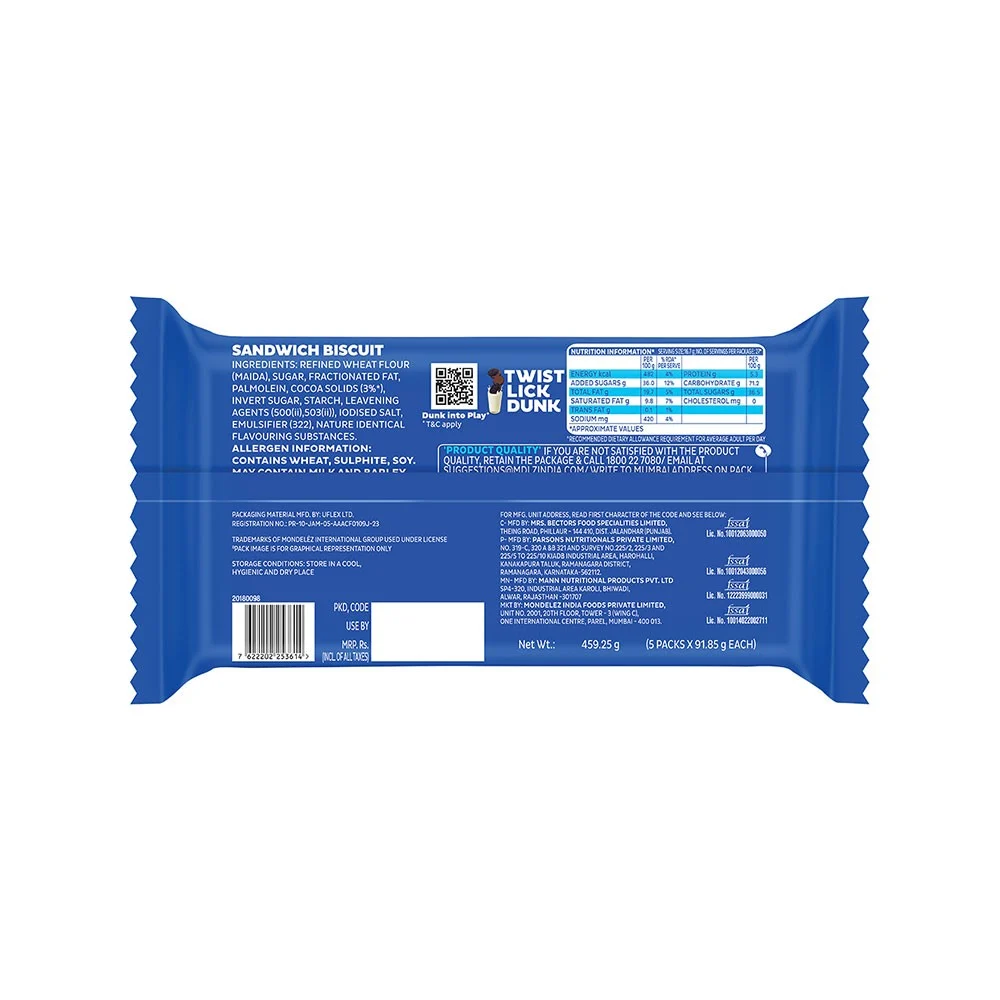 OREO: milk’s best friend for over 100 years! Cadbury OREO Chocolate crème sandwich biscuit consists of two chocolatey biscuits with a rich chocolate crème filling between them. Twist, lick and dunk! Enjoy OREO sandwich cookie with a glass of milk or add it to your favourite recipes like cakes and milkshakes! Add a scoop of vanilla ice cream to OREO biscuits to make your own creamy dessert!