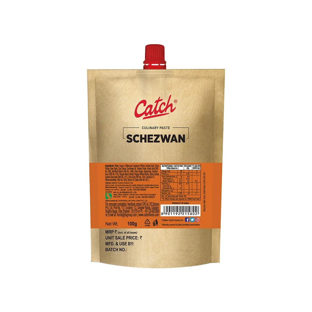 Water, Sugar, Chillies and Capsicum Whole, Iodized Salt, Onion Paste, Raw Garlic, Soy Sauce, Sunflower oil, Tomato Paste, Acetic Acid (INS No. 260), Modified Starch (INS No. 1400) , Raw Ginger, Seasoning, Xanthan Gum (INS No. 415, Pepper Black Whole, Pepper White Whole, Spice Extract, Sodium Benzoate (INS No. 211), Citric Acid (INS No. 330), Disodium 5’ – Ribonucleotides: (INS No. 635), Silicon Di Oxide (INS No. 551 ).