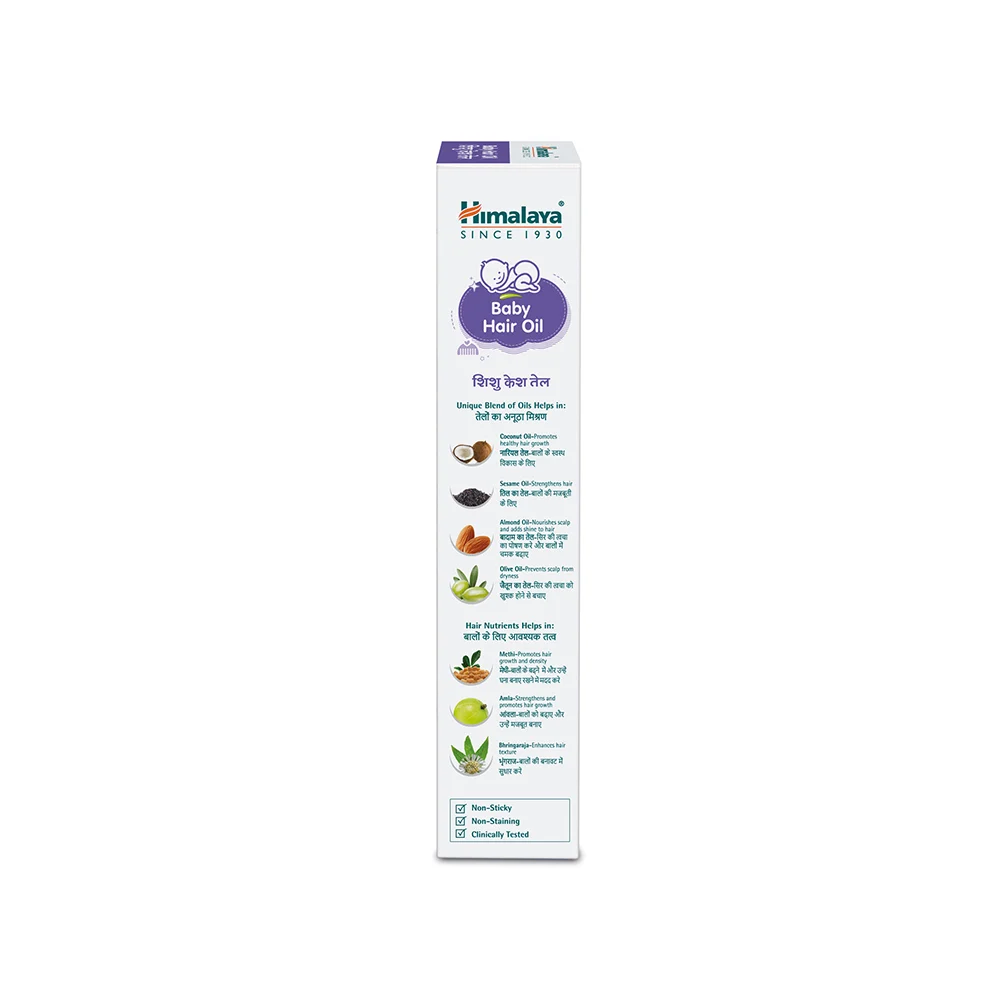 A unique blend of oils and herbs to help promote healthy hair growth. Enriched with Amla, Gotu kola, and Bhringaraja. Nourishes baby’s tender scalp. Prevent dryness.
