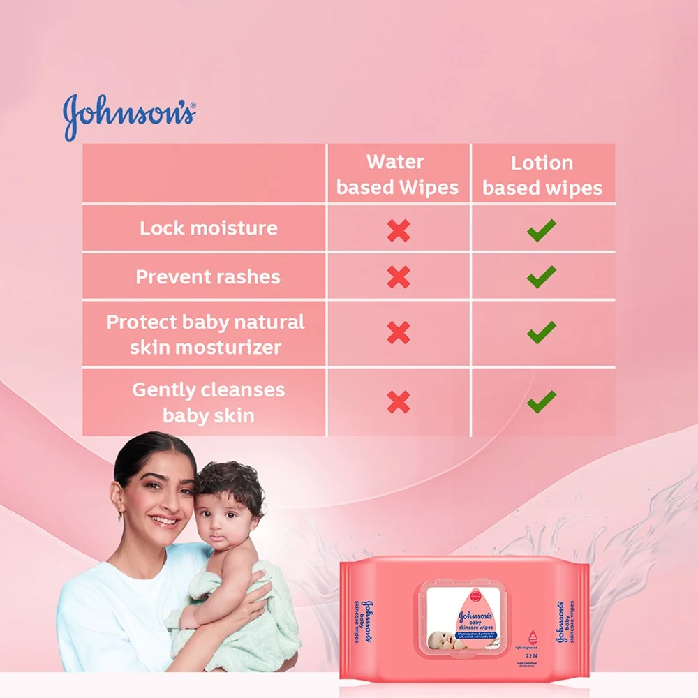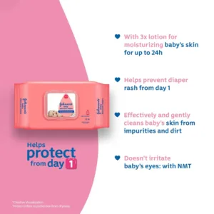 Johnson’s baby wipes with lid, protects newborn delicate skin from redness and rashes