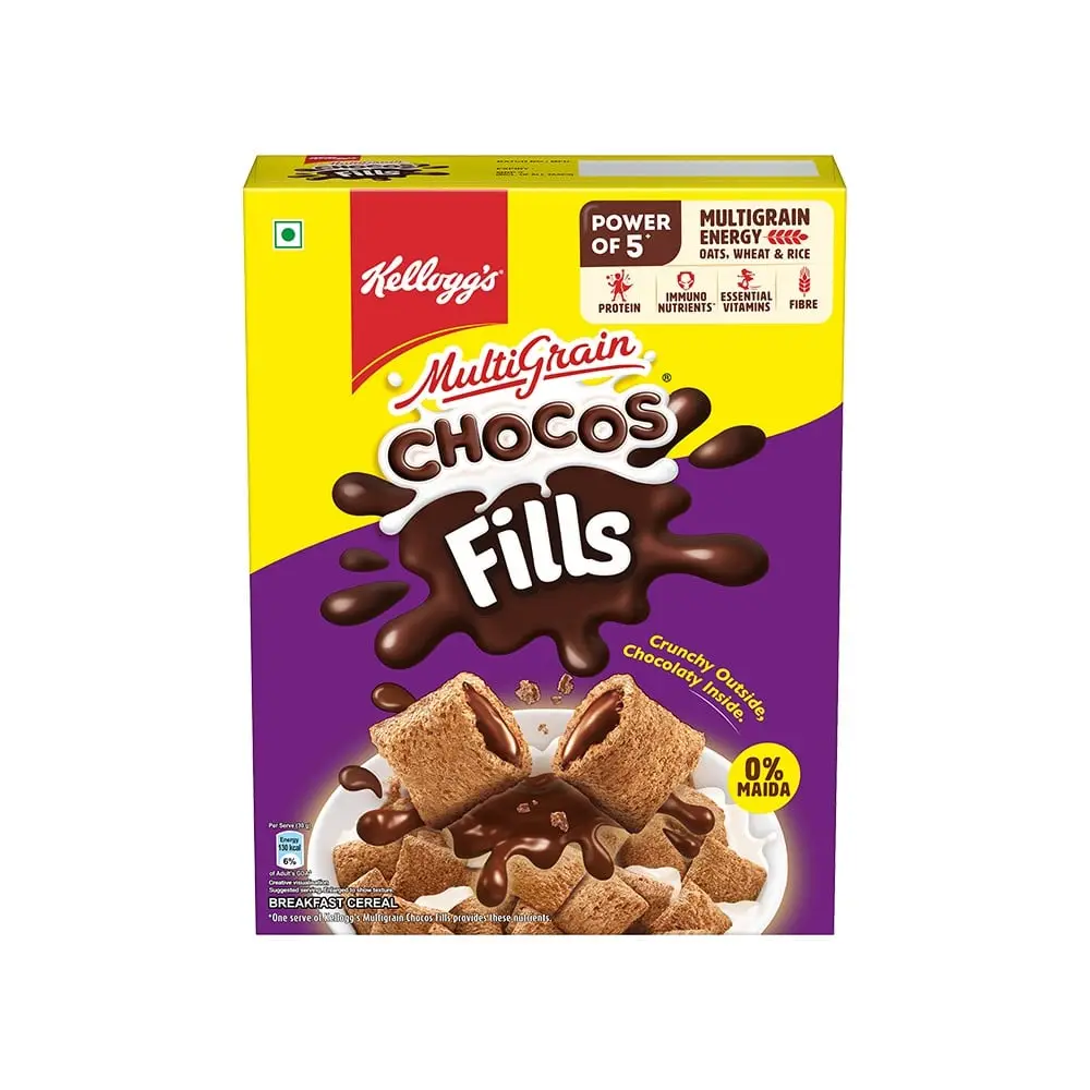 3 Grains: Every bite of Kellogg’s Chocos Fills has the goodness of supergrain Oats, Wheat & Rice which gives a nourishing start to the day.