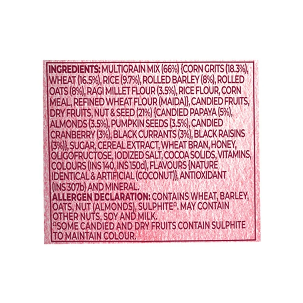 Made of Five Nutritious Grains & delicious inclusions.