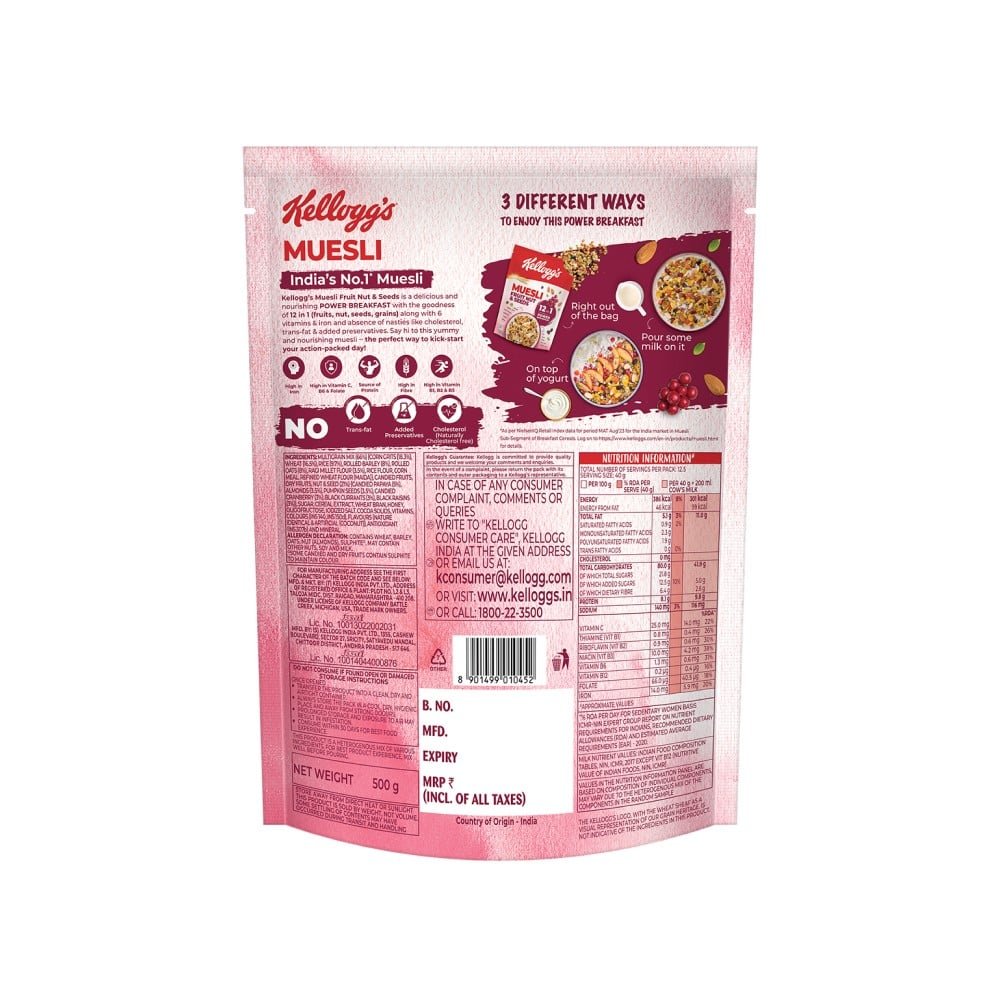 ‘New Kellogg’s Muesli with 21% Fruit, Nut & Seeds’, with the goodness of five baked grains (Wheat, Corn, Rice, Barley and Oats) and an abundance of dried fruits, nuts & seeds is carefully crafted for flavor and texture. Say Hello to a delightful breakfast, filled with multigrain goodness that will jump-start your mornings and get you ready for the day.