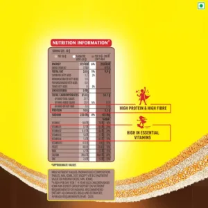 This product is high in protein,fibre,calcium,iron & essential vitamins like B1,B2,B3,B6.