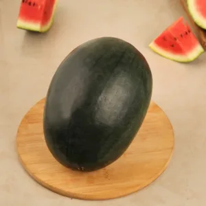 Kiran watermelon is a small to medium-sized variety of watermelon. It has a dark green rind with emerald-black undertones and its flesh is dark red,crisp,and slightly grainy. They have a refreshing,light,and sweet taste and can be eaten raw,sliced,or chilled in the fridge.