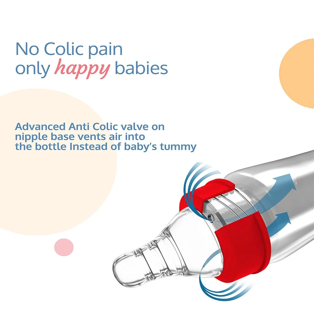 100% PP Feeding Bottle, BPA Free, Liquid Silicone Teat with advanced anti-colic valve, Wide based Grooved Nipple helps Natural latch-on, No Nipple Collapse, Ergonomic Bottle shape