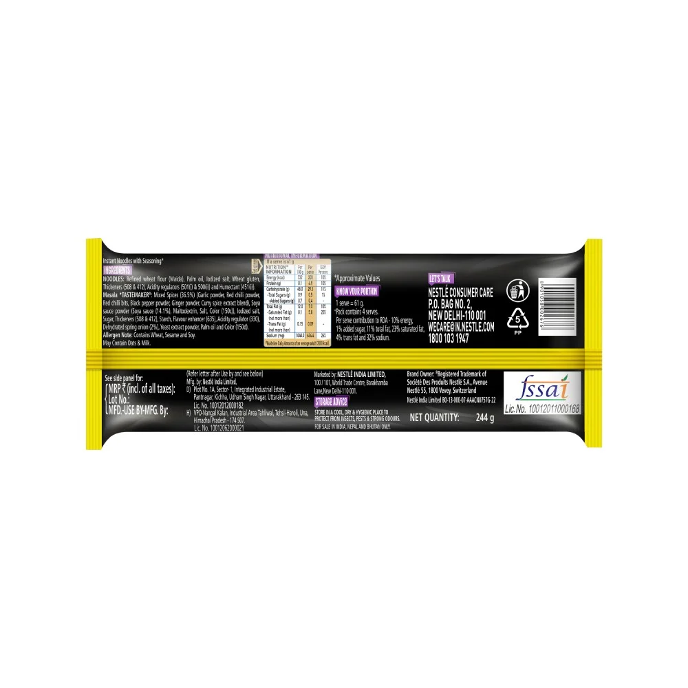 Masala Tastemaker : Mixed Spices (36.5%) (Garlic Powder, Red Chilli Powder, Red Chilli Bits, Black Pepper Powder, Ginger Powder, Curry Spice Extract Blend), Soya Sauce Powder (Soya Sauce (14.1%), Maltodextrin, Salt, Color (150c)), Iodized Salt, Sugar, Thickeners (508 & 412), Starch, Flavour Enhancer (635), Acidity Regulator (330), Dehydrated Spring Onion (2%), Yeast Extract Powder, Palm Oil And Color (150d).