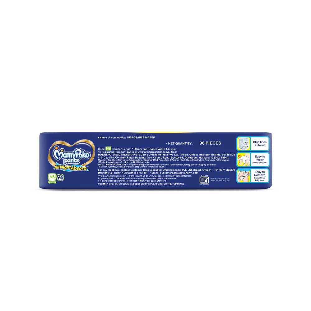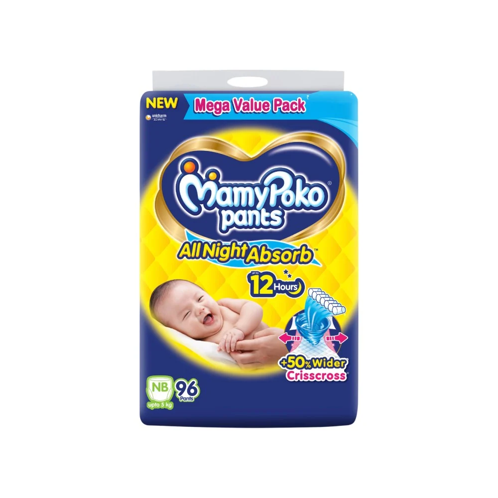 MamyPoko Pants All Night Absorb has +50% Widespread Crisscross absorption that absorb Widely & repeatedly for up to 12Hrs thus preventing leakage from heaviness.