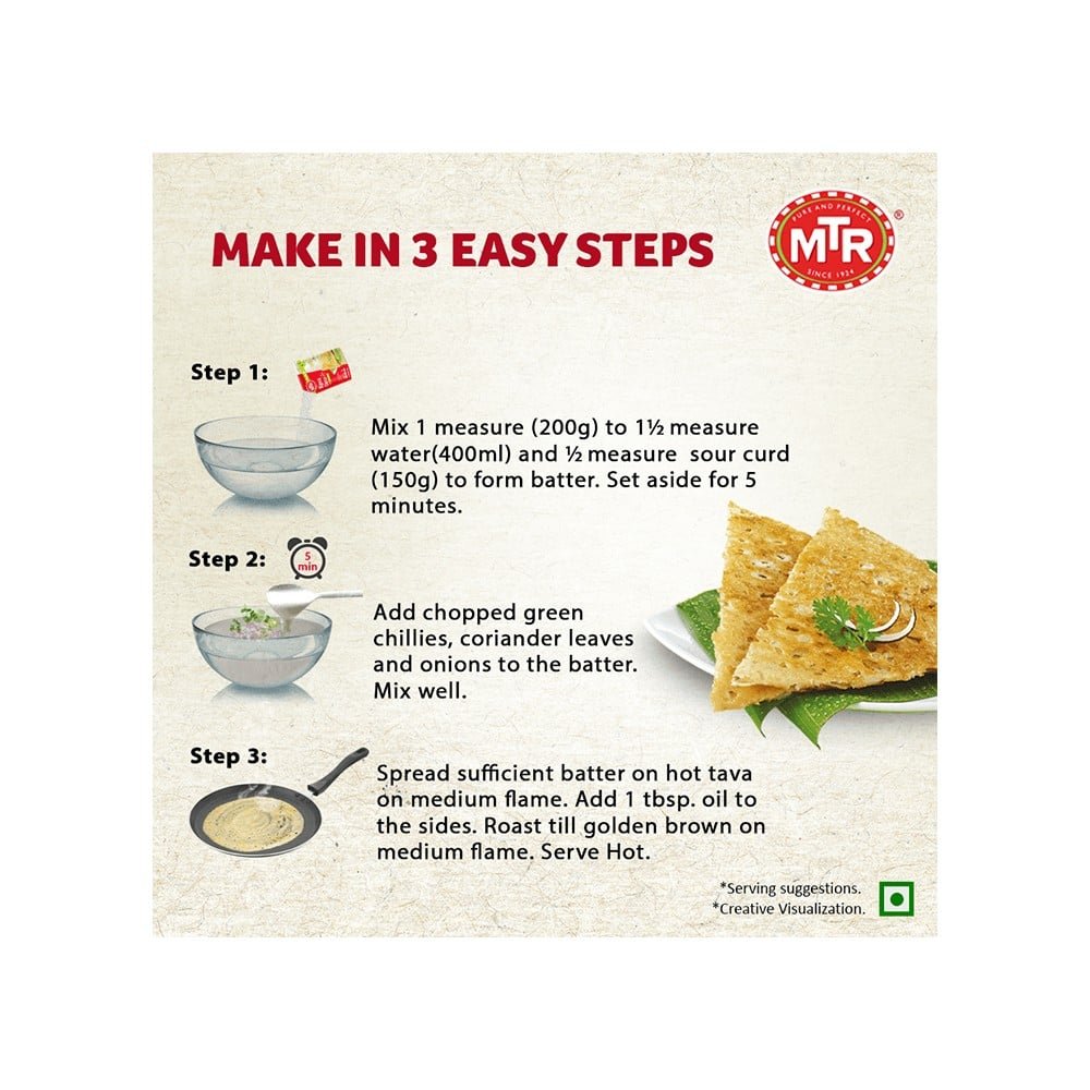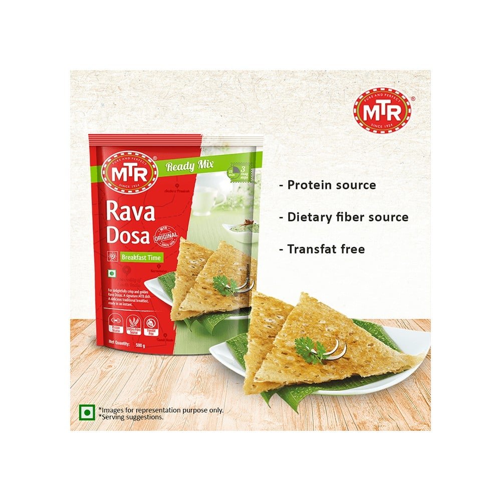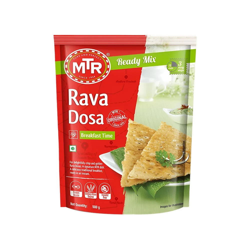 MTR Rava Dosa is an instant mix for preparing batter of Rava Dosa. Made with a perfect blend of semolina and rice, Rava Dosa is remarkably crispy, granular and golden on the edges. For an authentic South Indian flavour, it is often suggested to be served with sambhar and chutney.
