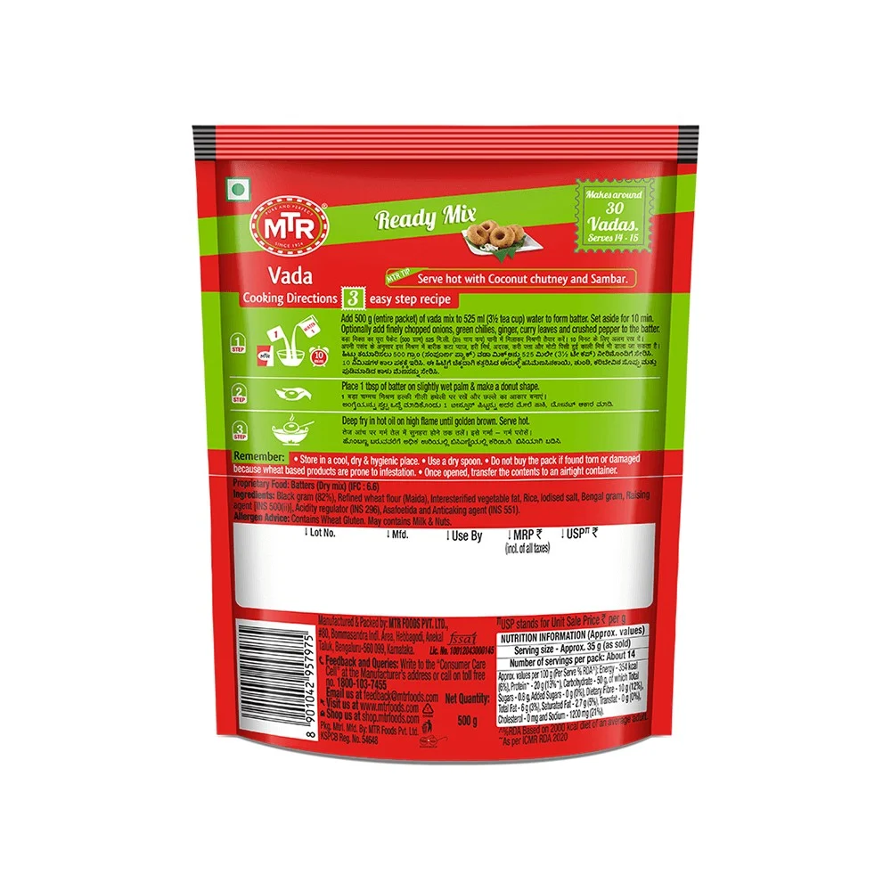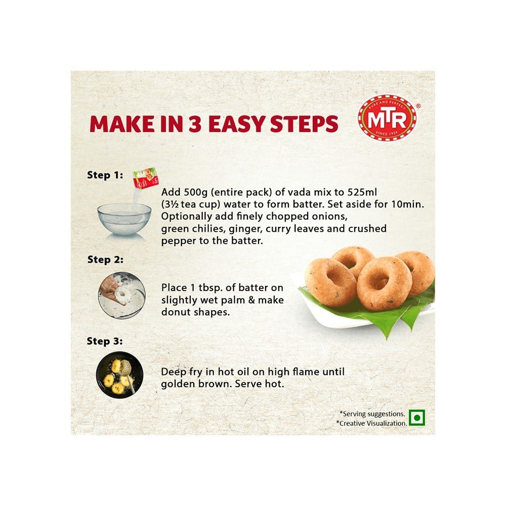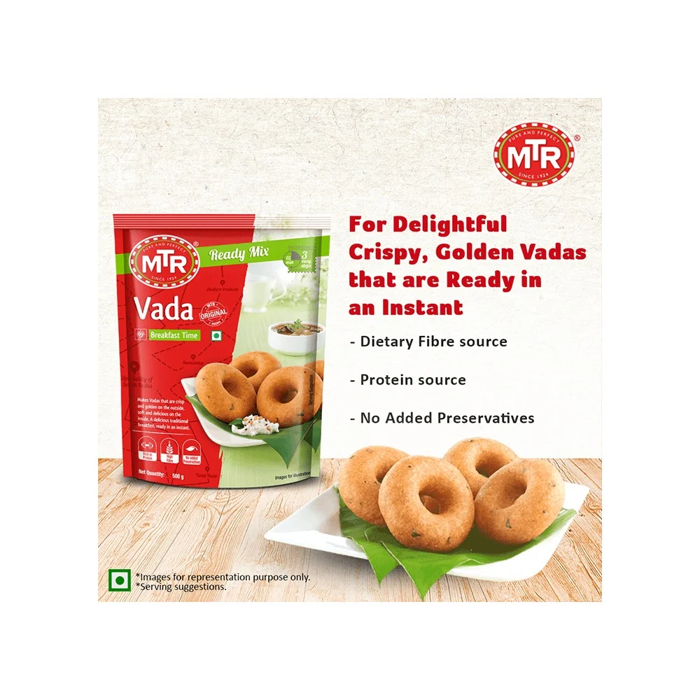 Easy and quick to prepare, MTR Vada Breakfast Mix offers a delightful taste in every bite. Serve it with Sambhar and Coconut Chutney for a wholesome meal.