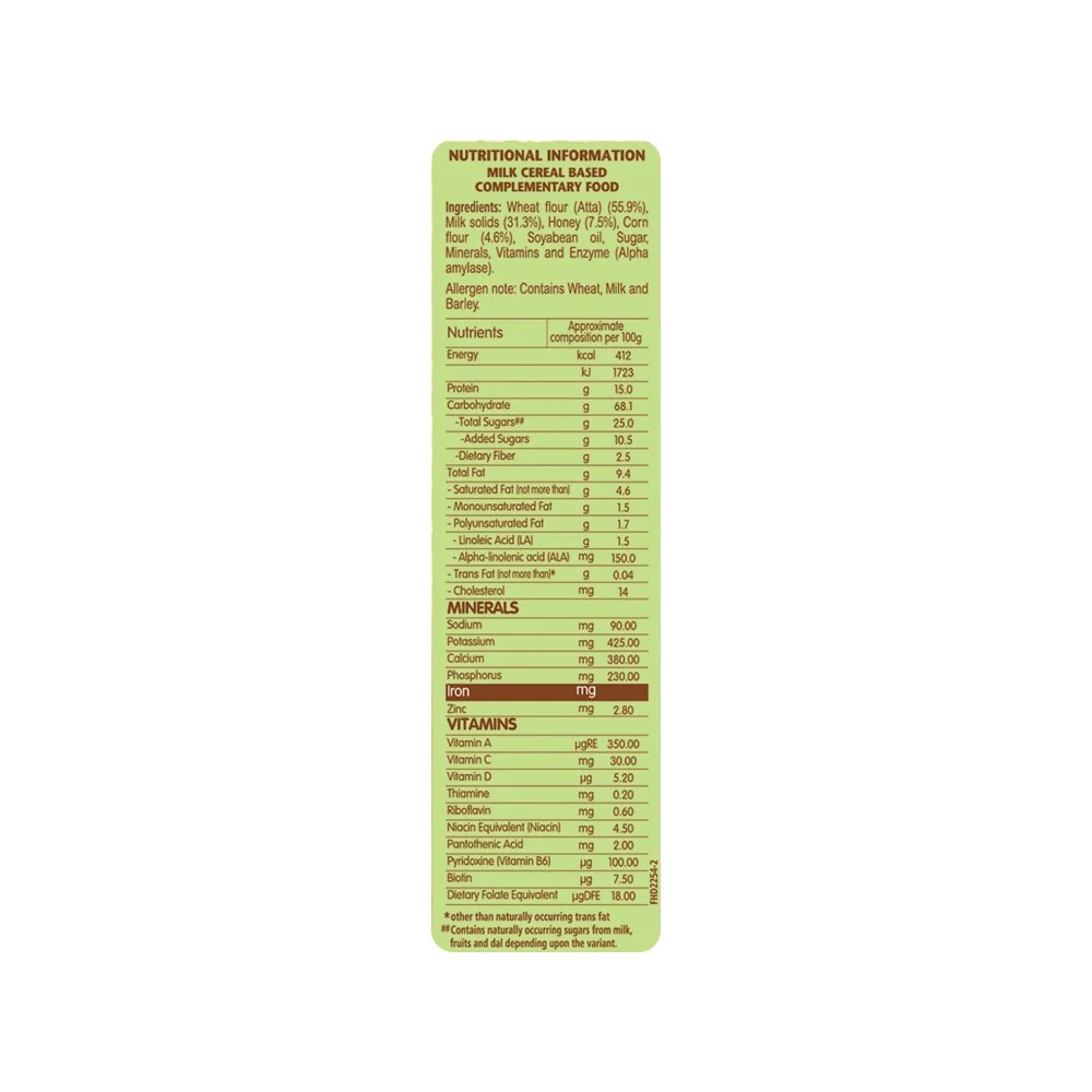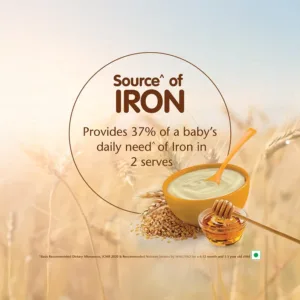 Nestle Cerelac Baby Cereal with Milk is a complementary baby food for infants from 12 to 24 months. While infants and children have higher requirements of nutrients than adults, 2 serves of Cerelac Wheat Honey Cereal provide 37% of a baby’s daily need of iron.