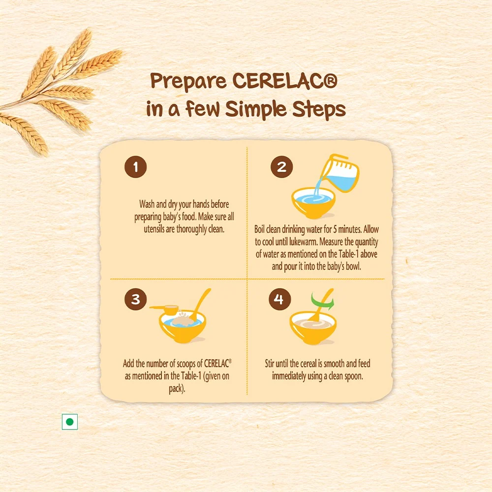 Add the number of scoops of CERELAC as mentioned.