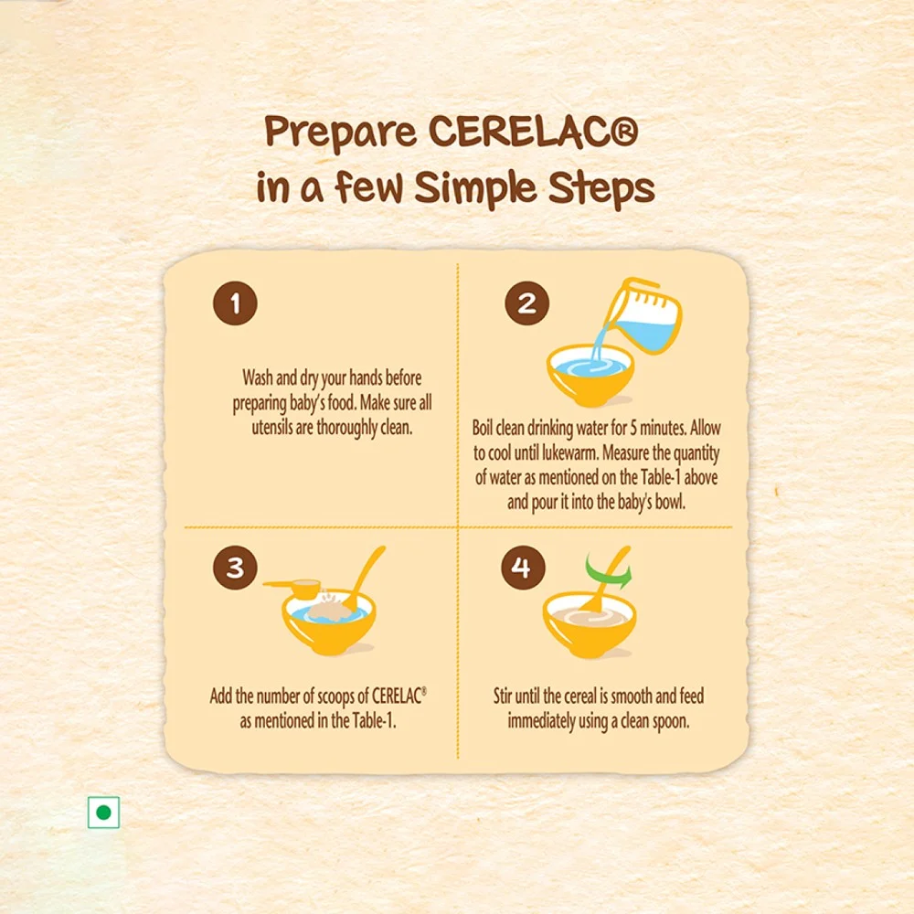 Step 3: Add the number of scoops of CERELAC as mentioned in the table 1.