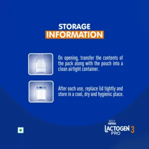 Transfer the contents from the baby milk powder box along with the pouch in an airtight container.Store in a cool,dry and hygienic place.Important Notice: Mother’s milk is best for your baby.