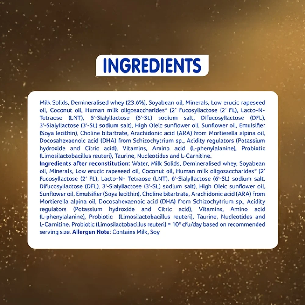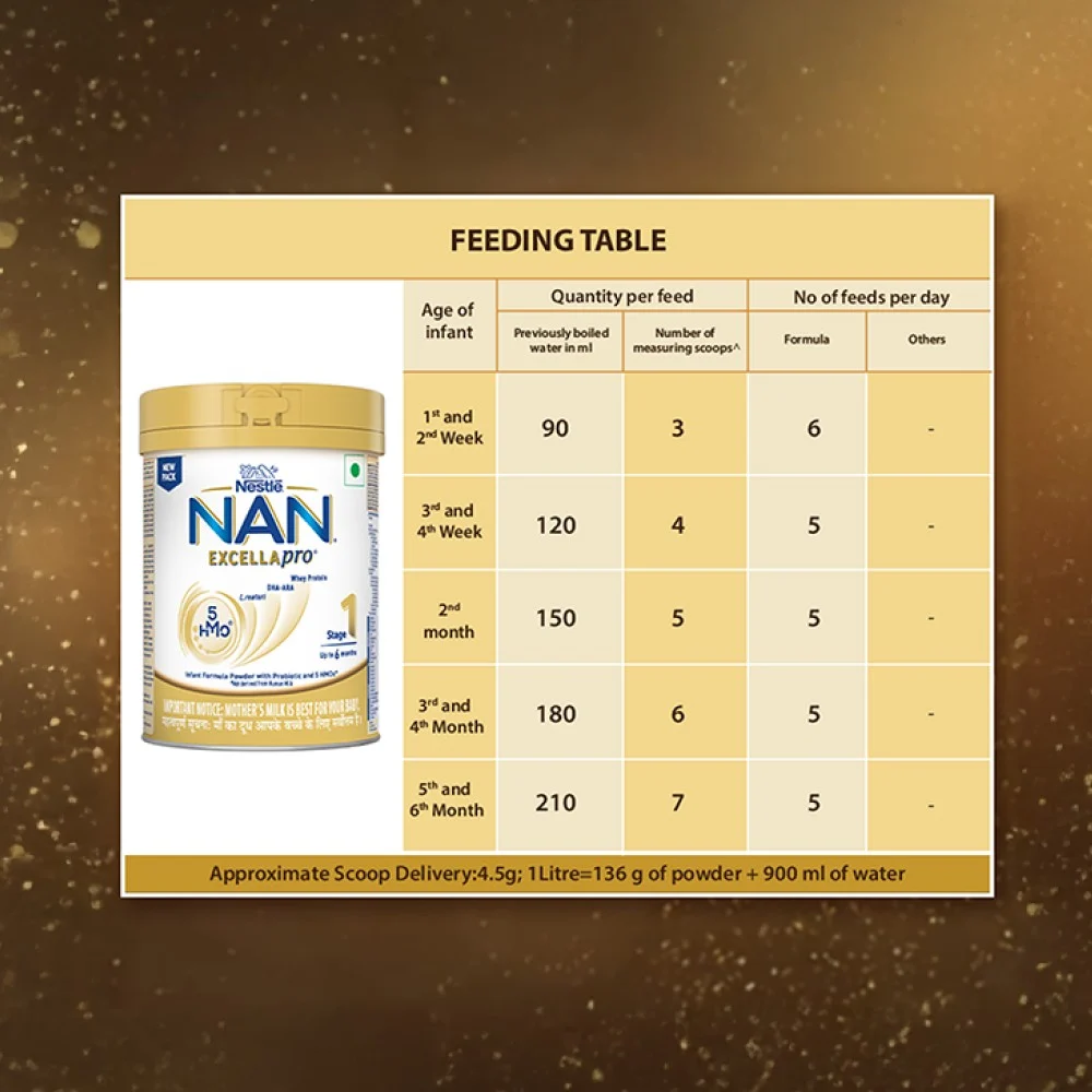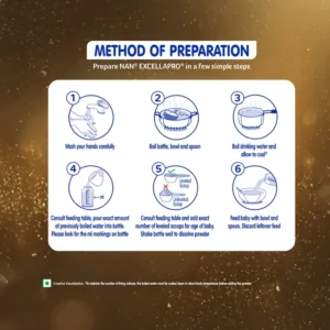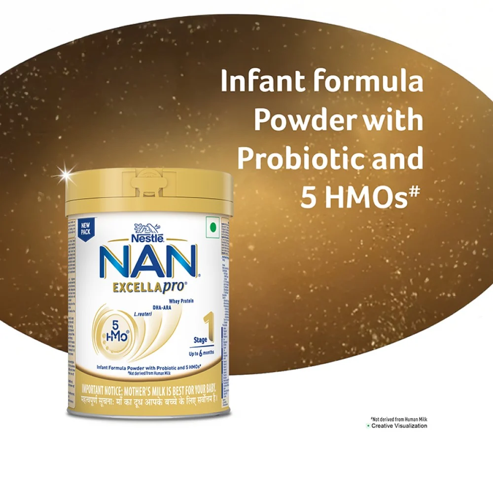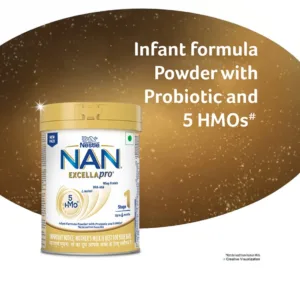 Nestle NAN EXCELLAPRO 1 is a spray dried infant formula with 5 HMOs, Probiotics, DHA, and ARA for babies from birth when they are not breastfed. NAN EXCELLAPRO 1 contains HMOs 2’FL & LNnT, which are amongst the most abundant HMOs. It also contains L. reuteri, which is a probiotic. NAN EXCELLAPRO 1 also contains DHA and ARA. Important Notice: Mother’s milk is best for your baby.