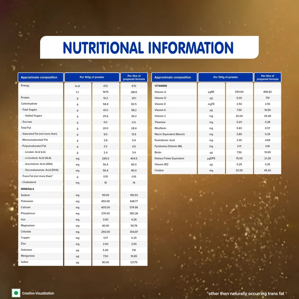 Contains DHA for normal brain development & Iron for normal cognitive development.