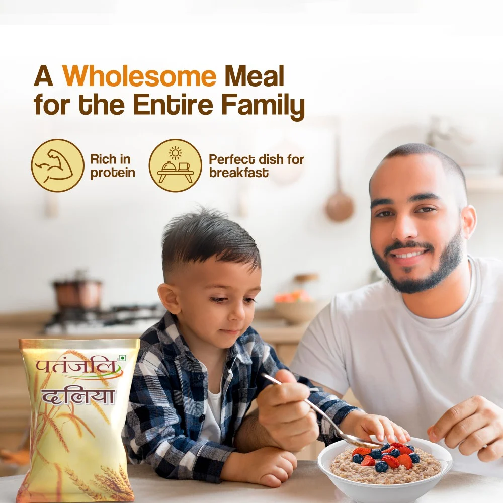 Made from premium grade selected wheat grains, Patanjali Regular Daliya makes for a versatile kitchen ingredient. It is used in the preparation of a variety of dishes such as, desserts, savories and snacks. Made from premium grade selected Wheat grains to keep the taste intact. Has a wholesome and nutritious flavour.