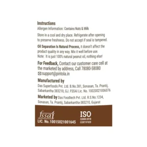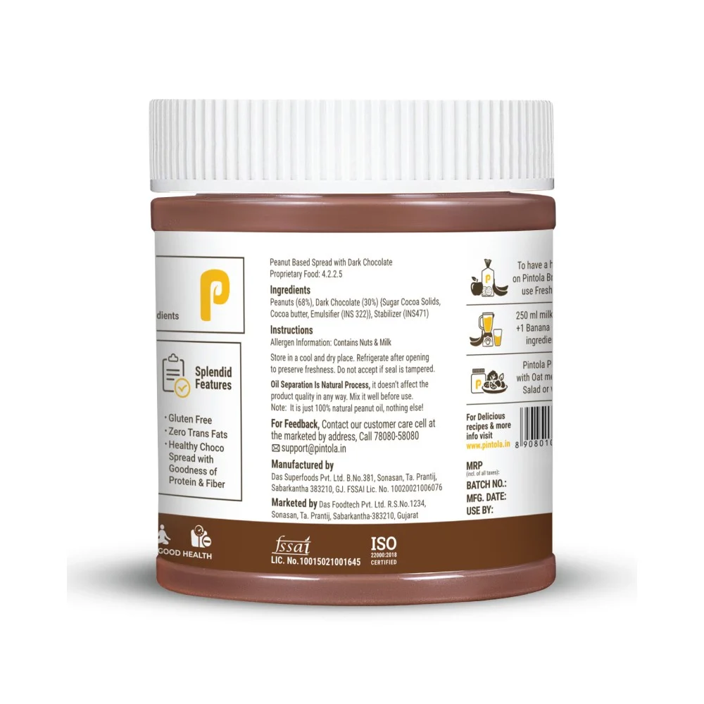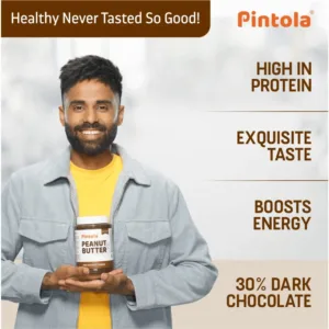 Pintola Choco Peanut Butter Is A Delicious Combination Of Premium Dark Chocolate Paste And Peanuts. This Is Healthy Chocolate Spread With The Goodness Of Protein. Unlike Other Chocolate Spreads Available In The Market, This Product Contains Lesser Sugar And More Healthy Stuff.All Pintola’s Products Are Made Up Of The Finest Grade, Fresh And Nutritious Ingredients From An ISO 22000 Certified And Fssai Approved Factory.