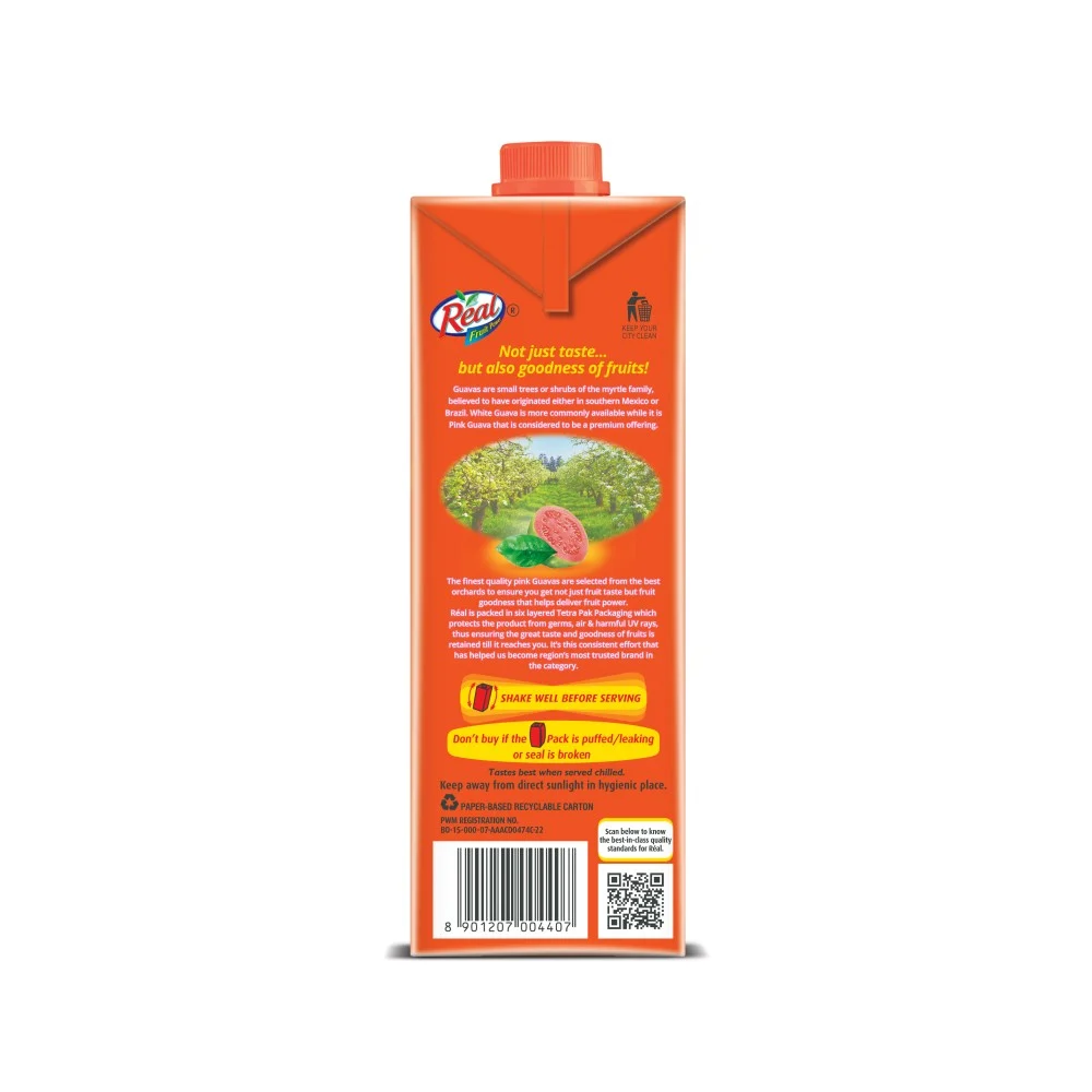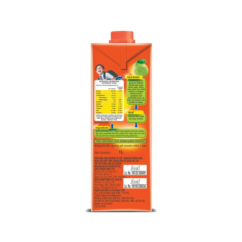 Water, guava pulp (24.9%), sugar, acidity regulator (INS 330), stabilizer (INS 440), antioxidant (INS 300) and salt.