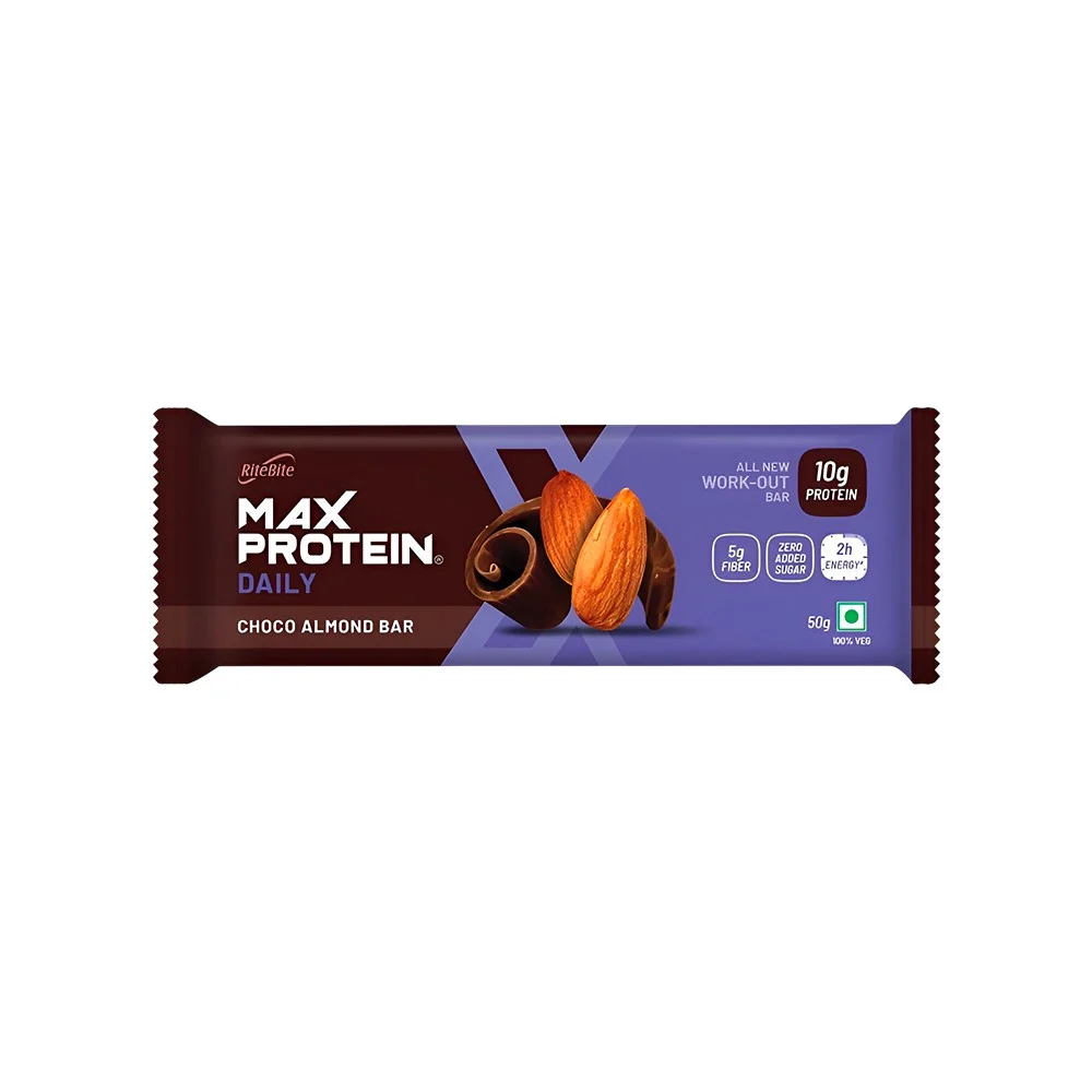 Sustained energy: Max Protein Choco Almond Bar is yours go to performance nutrition bar, purposefully crafted with an ideal mix of 3 protein blends of whey protein, soy and casein and a crunchy flavor with the goodness of almonds in every bite to sustain 2hrs of energy for a moderate-intensity activity and lifestyle.