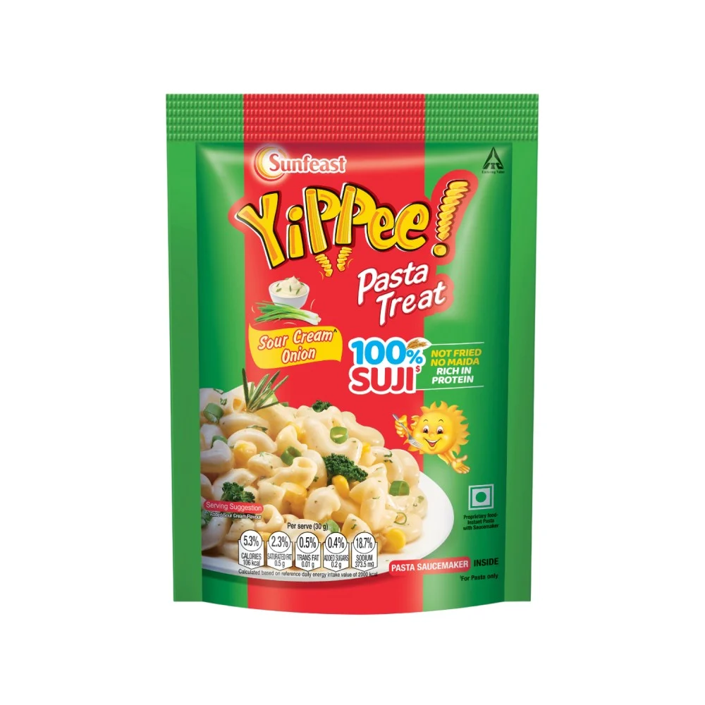 Looking for a wholesome treat? Look no more! Sunfeast YiPPee! Pasta Treat Cheese is a delightful and tasty dish loved by all ages. With a cheesy, creamy, mouthwatering taste, it is a delectable snack full of goodness. The pasta is made with 100% Suji, is not fried, and is a source of protein. Easy to prepare and quick to finish, Sunfeast YiPPee. Pasta Treat cooks in just under 8 minutes. Treat yourself with this heavenly combination of cheese and pasta, anytime and in a jiffy. Sunfeast YiPPee! pasta also comes in a variety of flavours. Grab your favourite variant now.