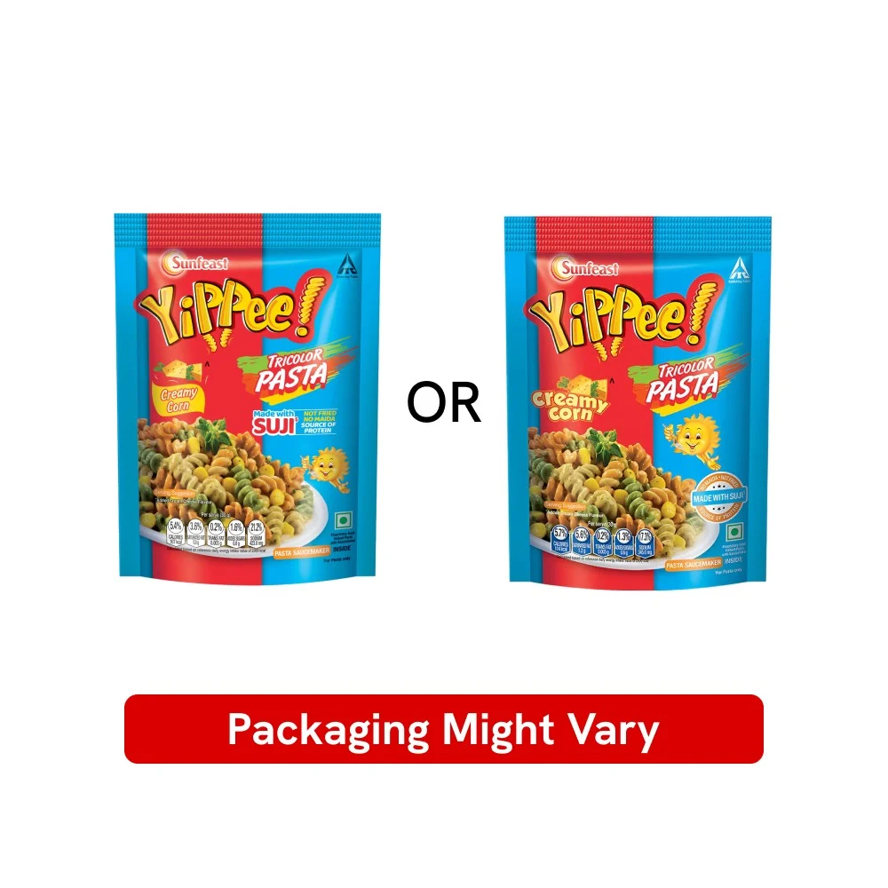 Normal pasta with a tricolor twist for 3 times the fun! Our Sunfeast YiPPee! Tricolor Instant Pasta Creamy Corn is a treat for pasta lovers. It has a buttery smooth taste & corn added to it. Easy to make, it cooks in under 8 minutes.